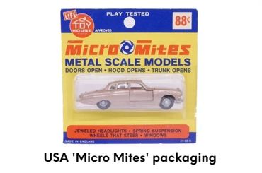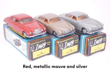 With numbering starting at 10, the big Mk.X Jaguar was the first model in the ‘Impy Super Cars’ range. This is an attractive model which captures the sweeping lines of the real car. Impy models with their distinctive jewelled headlights can be found in at least 4 different colours (including blue – not shown below).