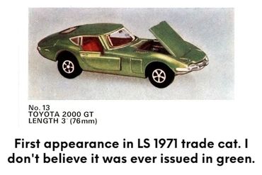 A simplified version of the 2000GT went on the feature in Lone Star’s 1978 budget range of cars. (See ‘Impy Super Models’ page).