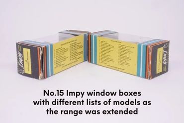A complication with this model was that it did not fit in the standard Impy window box (I1) used for the other cars. A new larger box (I1L) had to be specially produced which must have also caused a need for new larger ‘outer’ trade boxes too. Packaging for this larger VW model would continue to cause problems. . .