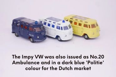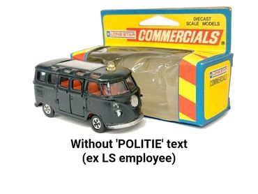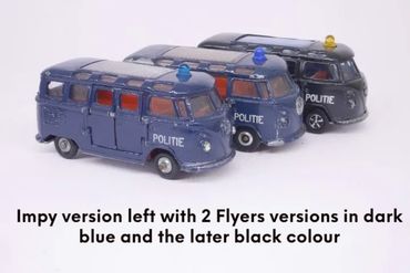 Issued by Lone Star for the Dutch speaking market is this 'Politie' version of the Volkswagen. It was likely produced at the request of Hema, a significamt customer of Lone Star with department stores throughout the Netherlands. Both Impy and Flyers versions were issued initially in dark blue which changed to black towards the end of Flyers production.