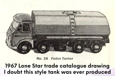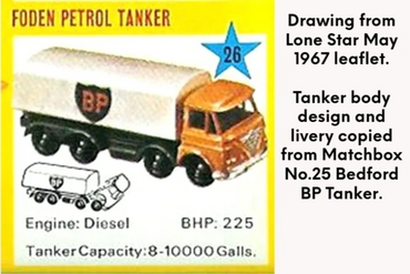The first illustrations were in the 1967 trade catalogue and a May 1967 leaflet. The trade catalogue showed the model with what looks to be a blow-moulded tank body, though this could just be a mock up based on a press photo of the real thing (see below). I doubt a version with this style of tank was ever issued. Meanwhile the leaflet drawing depicts the tanker in an attractive BP livery. Again Lone Star appear to have looked to Matchbox for inspiration and copied the livery from their Bedford BP tanker!