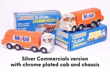 Also around 1972 Lone Star launched its ranges of silver plated cars and commercials where the Mobil tanker became S26 in the ‘Silver Commercials’ range. This range appears to have been issued for the Japanese market only and all ‘Silvers’ are hard to find.