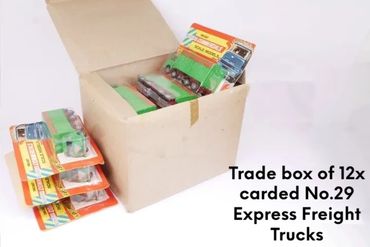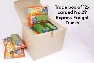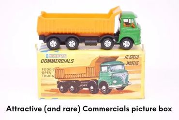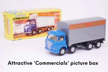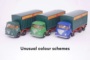 Like the rest of the range the Express Freight truck was given hi-speed wheels around 1972 and production continued until the range was dropped in 1976. A new ‘Commercials’ box was produced with attractive artwork but these only had a short production run and are now hard to find. A special version of this Foden was issued in Japan carrying ‘Railway Container’ labels (in Japanese).
