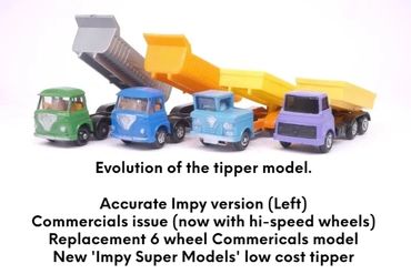 In 1972 new ‘Hi-speed’ wheels arrived as did a new range of plated ‘Silver Commercials’ which included the ‘Open Truck’ as No.S24. Also around this time a second tipper was added to the range when the No.24 chassis and tipper body were married to a new S50 Foden half cab to produce a Tilcon promotional model (See No.42). These two Fodens continued in the range until 1975 when the Tilcon version was dropped and No.24 replaced by a smaller, cheaper to produce 6 wheel tipper (No.49). The good news is this model was also based on a Foden, the S50.