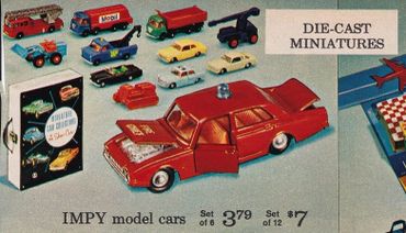 An early drawing in an Impy sales leaflet (dated May 1967) depicts the model with a more conventional separate breakdown body. Presumably at this stage the artist had little to go on other than ‘Ford Transit breakdown truck’. The model's next appearance was in the USA retail giant, Mongomery Ward’s 1968 Christmas catalogue. This fascinating photo shows a number of Impy models at their pre-production stage. The Transit breakdown truck is shown with non-standard ‘BP’ transfers and black jib. I have an example of the breakdown truck finished like this (and have seen a second one) so suspect the initial batch was issued like this. The ‘BP’ transfers are from Lone Star’s larger ‘Roadmasters’ Austin tanker. The ‘BP’ Transit also features a non-standard interior. Presumably the Transit interior moulding wasn’t yet ready as this left hand-drive interior is actually the front section taken from the Impy VW Microbus!