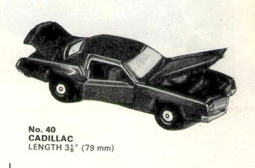 No.40 Cadillac was numerically the last Flyers car and also the final Flyers car to be produced, remembering that they were not always issued in numerical order. Lone Star were renowned for promising more than it could deliver with several new models always proclaimed to be on the ‘drawing board’. The Cadillac probably spent longer in the pipeline at Lone Star than any other model, first appearing on Impy box listings back in 1968. Not only did it miss being part of the Impy range, it missed around the first 6 years of Flyers production so when it finally materialised right at the end it had been subject to the recent cost cutting measures resulting in it being the only Flyers model to have no opening features.
