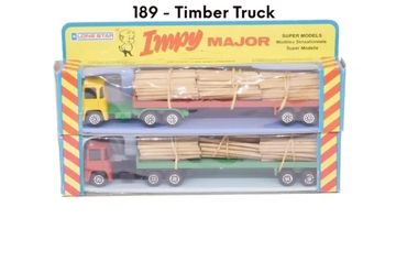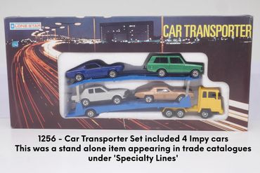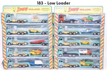 The first 6 ‘Impy Majors’ appeared in Lone Star’s 1978/79 trade catalogue and were an effective way for Lone star to get extra value from its existing castings. The Impy Majors were made up from the current ‘Impy Super Models’ lorries now coupled to new trailers whilst two sets made use of exisiting stocks of old Flyers cars.
