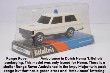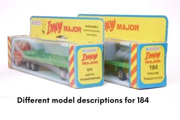 The 'Impy Majors’ tended to appear with specific cabs and in set colour schemes, however, as shown below this wasn't always the case. The ‘Majors’ (along with the 'Impy Super Models' cars and trucks) last appeared in Lone Star’s 1983/4 trade catalogue. Around this time 3 new car sets (including a promotional Ranger Rover & boat set for the RNLI) were issued in ‘Impy Major’ packaging, although these never formed part of the numbered range.