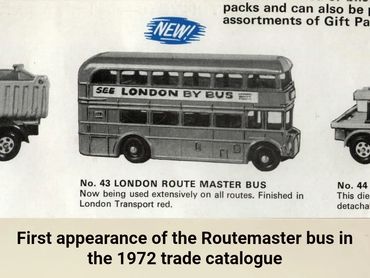 Lone Star’s Routemaster first appeared in the 1972 trade catalogue where it was shown as No.43 in the new Commercials range. Presumably the new model wasn’t yet ready as the photo actually depicts Lone Star’s existing and much smaller Tuf-Tots Routemaster bus.