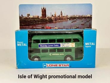 The ‘sludge’ green buses were produced for the Isle of Wight tourist trade with this shade of green meant to represent the livery used by the local bus operator ‘Southern Vectis’. Lone Star supplied these buses with ‘Newport’ destination stickers but apparently the various side adverts were applied locally by inmates at the islands prison. There must have been left over stocks of this model as several ‘Code 3’ versions are available adorned with various stickers and transfers.